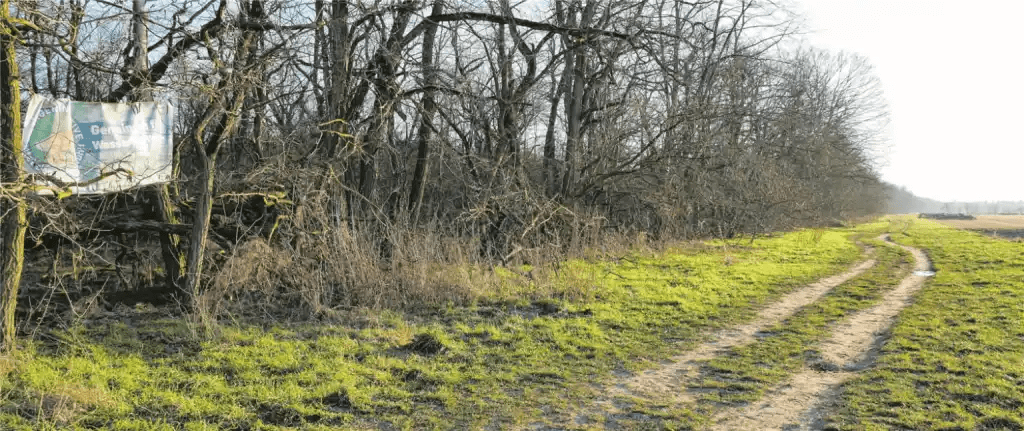 Am Waldrand hat die BI schon vor Jahren ein Plakat aufgehängt, um auf ihren Protest gegen den geplanten Kiesabbau im Gewann Entenpfuhl aufmerksam zu machen.Bild: Benjamin Jungbluth